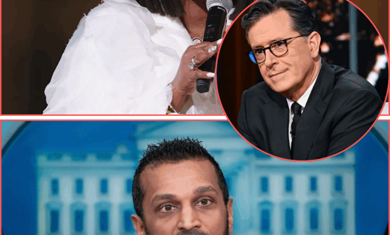 But the story didn’t end there — because within minutes, Stephen Colbert posted a teaser clip online showing him holding a sealed envelope marked “Patel,” hinting that he would join Crockett for a late-night exposé designed to “finish what she started.”