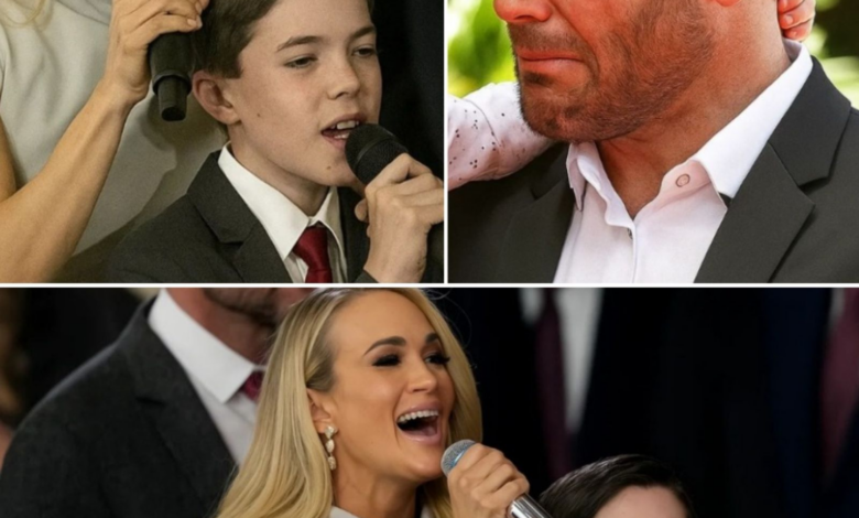 f.“18,000 PEOPLE WENT SILENT — FOR A 9-YEAR-OLD AND HIS DAD.” Backstage, Carrie Underwood’s little boy held the microphone with both hands. His voice was barely steady.f