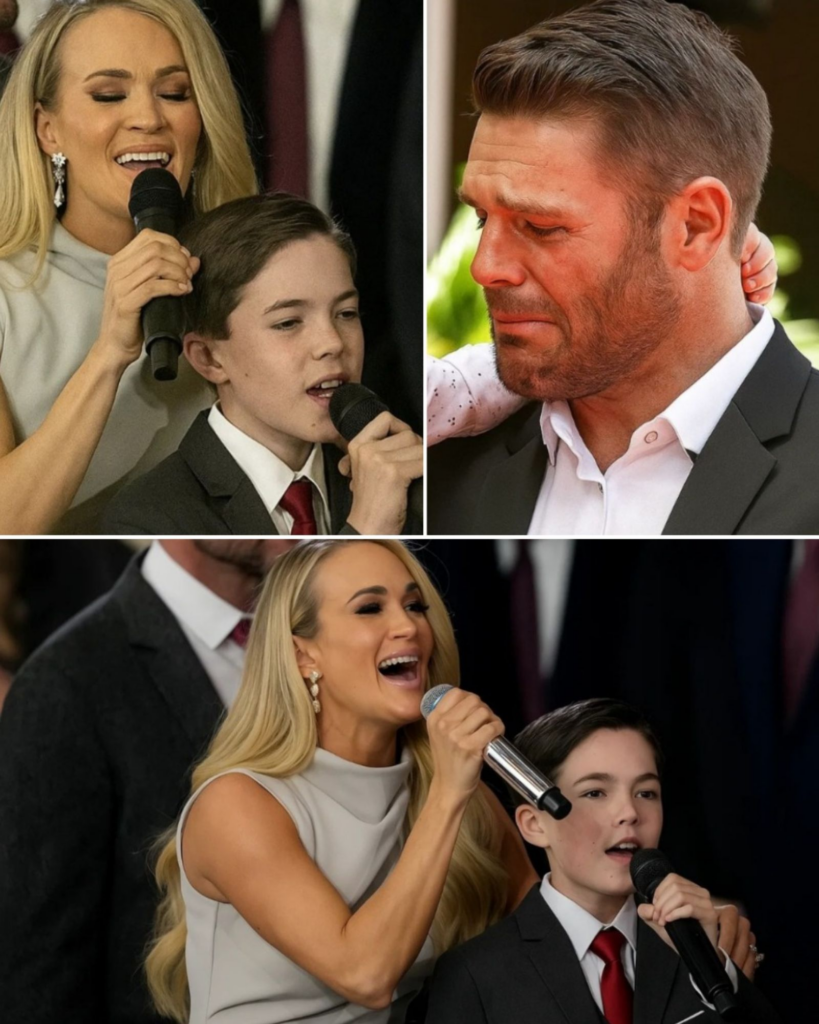 Carrie sat at the piano behind him. She played softly, almost protectively, as if she didn’t want to interrupt the moment. The notes were gentle. Patient. They left space — and her son filled it with courage.