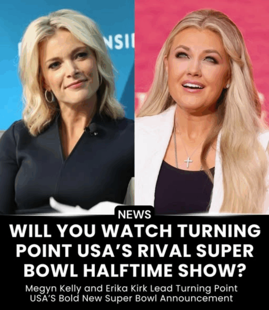 Dallas, Texas — History was made today under the bright lights of the Lone Star State. For years, Americans have debated what the Super Bowl Halftime Show has become — flashy, controversial, and often disconnected from the very spirit of unity that defines the nation’s biggest night. But that changed this morning when Megyn Kelly and Erika Kirk stepped onto the stage in Dallas and unveiled something that could reshape entertainment forever.
