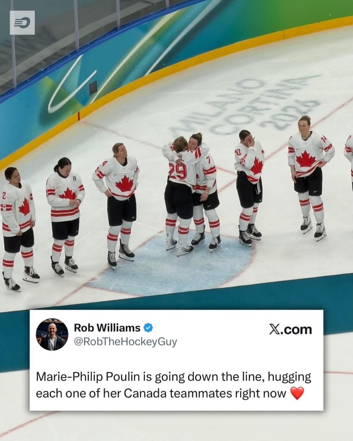 RESPECT 🇨🇦 Finally, after their tough loss to Team USA, Canada’s captain Marie-Philip Poulin hugged, congratulated, and consoled every teammate one-by-one 🥺