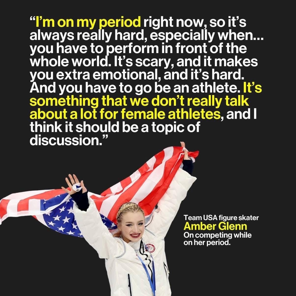 Amber also ignited a far too often overlooked, taboo topic: The fact that women often compete WHILE ACTIVELY BLEEDING. (And sometimes while wearing all white!) They deserve a medal just for THAT! 😝