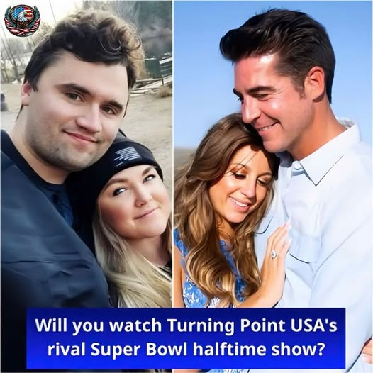 Turning Point USA (TPUSA), a conservative nonprofit organization, made a bold and unapologetic statement with their “All-American Halftime” special — a show that turned the Super Bowl’s spotlight from celebrity glitz to deeply rooted American values. Co-hosted by Jesse Watters and Erika Kirk, the event not only highlighted faith, family, and tradition but also posed an unmistakable challenge to the very core of Hollywood’s entertainment empire.