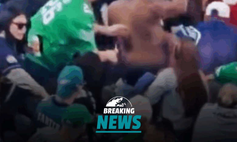 Security sprinted toward the chaos, but the crowd’s momentum moved faster. Dozens of Eagles and Cowboys supporters tumbled over seats and railings in a desperate scramble to defend colors stitched into their chests. Phones lit the scene from every angle as the brawl spread to two separate rows.