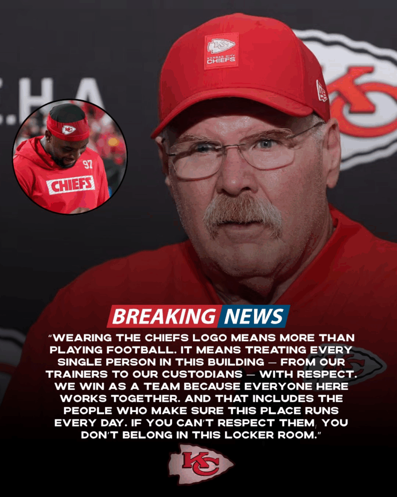 The following morning, Reid called a full team meeting. Without naming anyone, his message was unmistakable: “Wearing the Chiefs logo means more than playing football,” Reid said. “It means treating every single person in this building — from our trainers to our custodians — with respect. We win as a team because everyone here works together. And that includes the people who make sure this place runs every day. If you can’t respect them, you don’t belong in this locker room.”