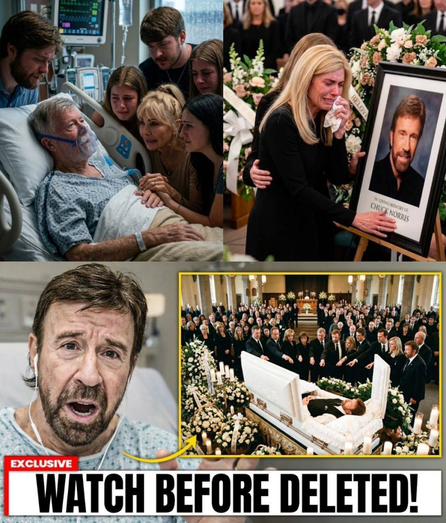 In the first image now circulating widely online, Chuck Norris lies in a hospital bed, frail but conscious, surrounded by those closest to him. Machines hum softly in the background, their steady rhythm a stark reminder of the battle his body was fighting.