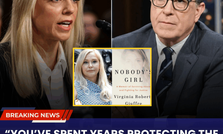 The studio lights on *The Late Show* stage had never felt so heavy. At 11:37 p.m. on November 14, 2025, Stephen Colbert stepped out from behind the curtain without his usual grin. No monologue jokes. No cartoonish Trump impression. Just a man in a dark suit, holding a worn copy of Virginia Giuffre’s **THE VOICE THAT SHOOK THE POWERFUL** like it was evidence in a murder trial. The audience—1,200 strong in the Ed Sullivan Theater—sensed the shift immediately. Phones lowered. Whispers died.