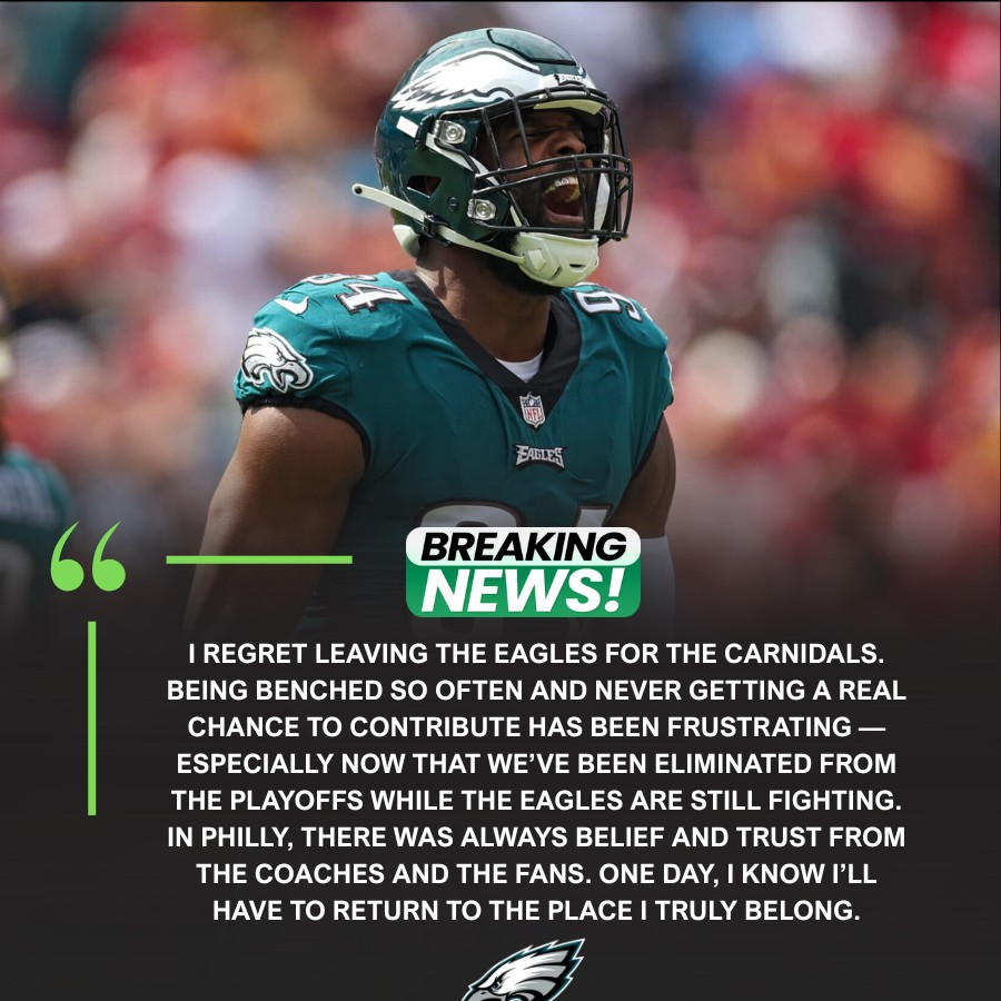 What was supposed to be a fresh start has quickly become a difficult reality. A former Philadelphia Eagles defensive cornerstone — once a Super Bowl LIX champion and one of the most disruptive edge rushers in the NFC — now finds himself openly questioning his decision to join the Arizona Cardinals.