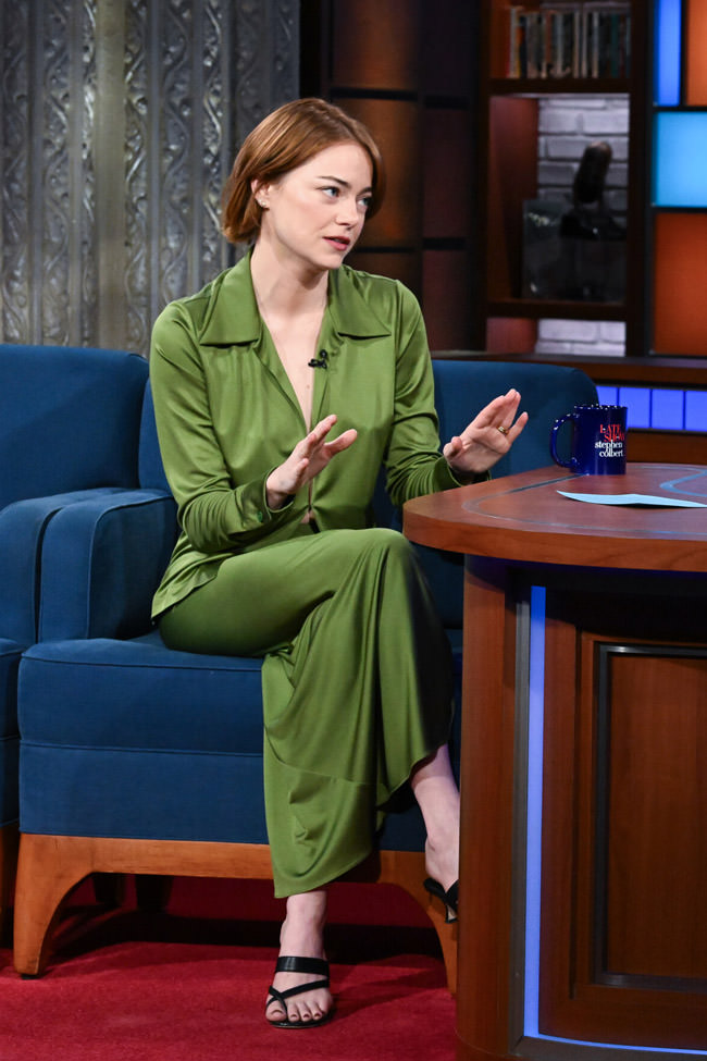 f.Emma Stone Stuns in Archival Donna Karan as She Lights Up THE LATE SHOW With BUGONIA Buzz.f