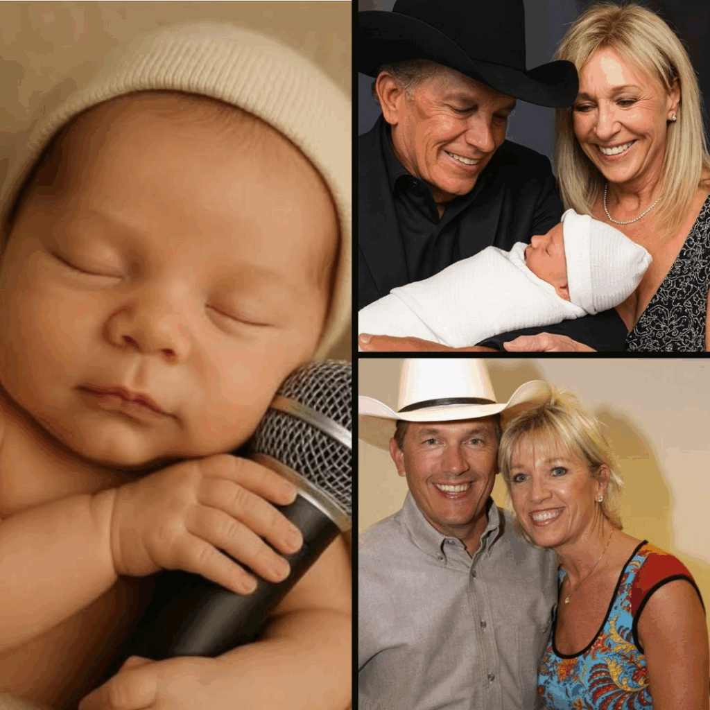 In the image, Norma Strait cradles the newborn, swaddled in a soft, comforting blanket. The baby rests peacefully, radiating calm and serenity. George stands beside her, his hat tipped back, wearing a rare and warm smile — a tender expression fans hardly ever see offstage. For a man known as the King of Country, this intimate moment showcases a side of George that is deeply personal and profoundly moving.