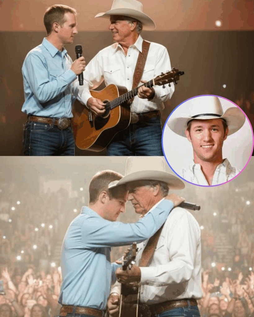 The crowd hushed. Then, from the wings, Bubba Strait — George’s son and frequent songwriting partner — stepped into the spotlight, a guitar slung over his shoulder. The audience gasped, and then the arena erupted in applause. Father and son embraced, both visibly emotional, before the first gentle notes of a song no one had ever heard began to play.