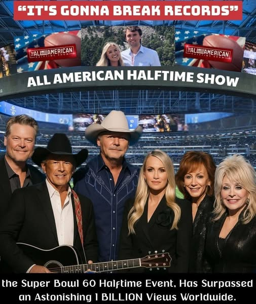 A NATION’S HISTORY UNFOLDS: Six Legends Unite for the “All-American Halftime Show” — A Powerful and Patriotic Alternative to the Super Bowl 60 Halftime Event Just announced in Nashville, Tennessee — Alan Jackson, George Strait, Trace Adkins, Kix Brooks, Ronnie Dunn, and Willie Nelson will share one unforgettable stage in this once-in-a-lifetime event honoring the late Charlie Kirk. Produced by his wife, Erika Kirk, the “All-American Halftime Show” promises to be more than just music — it’s a celebration of faith, freedom, and the enduring heart of America.