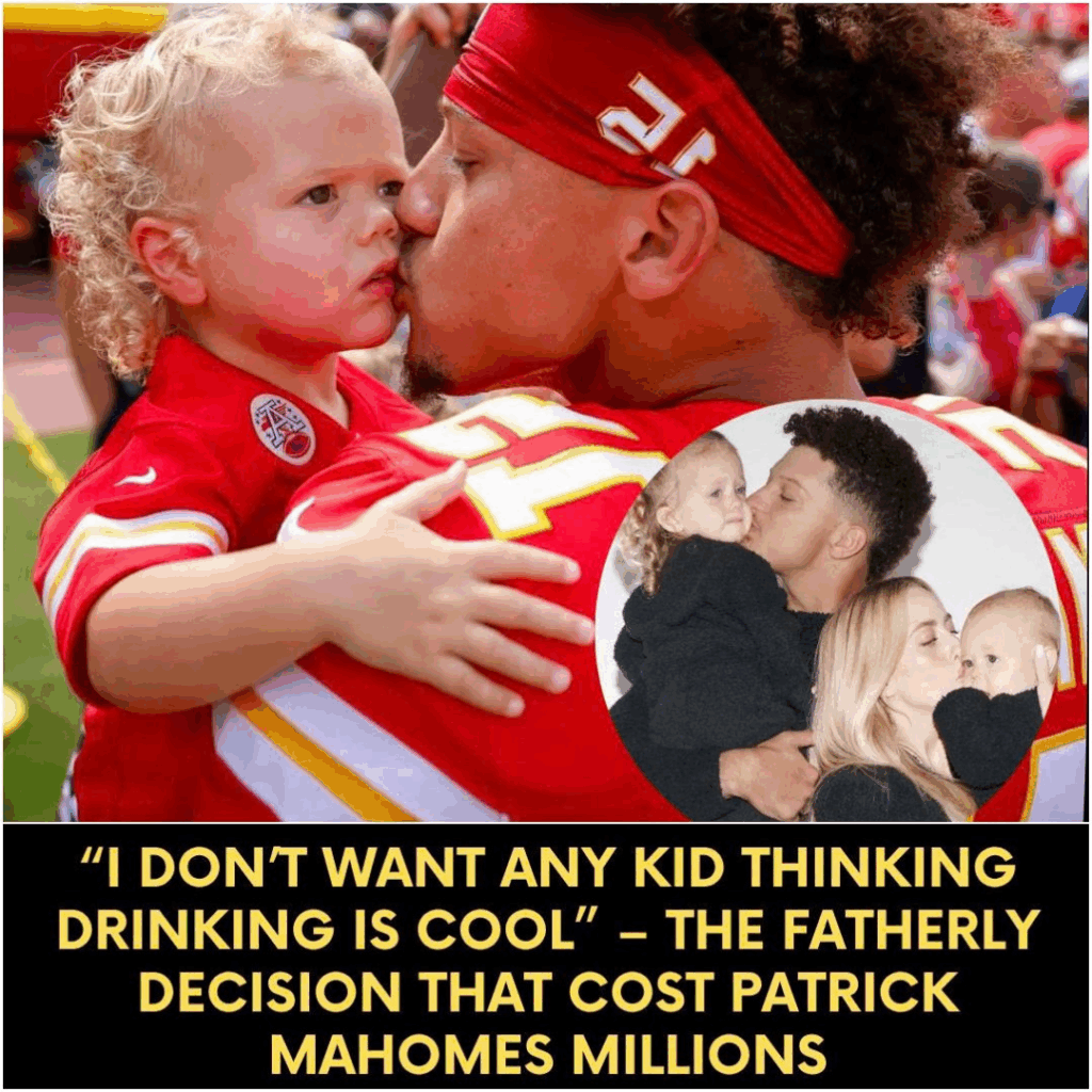 In a world where million-dollar endorsements are accepted in a heartbeat, Patrick Mahomes made a decision that left even his closest advisors speechless. Offered $4 million to be the face of a high-end liquor brand, Mahomes didn’t even need a full day to decide. He just looked at a photo of his infant son, Bronze, then quietly said, “We’re not doing this.”