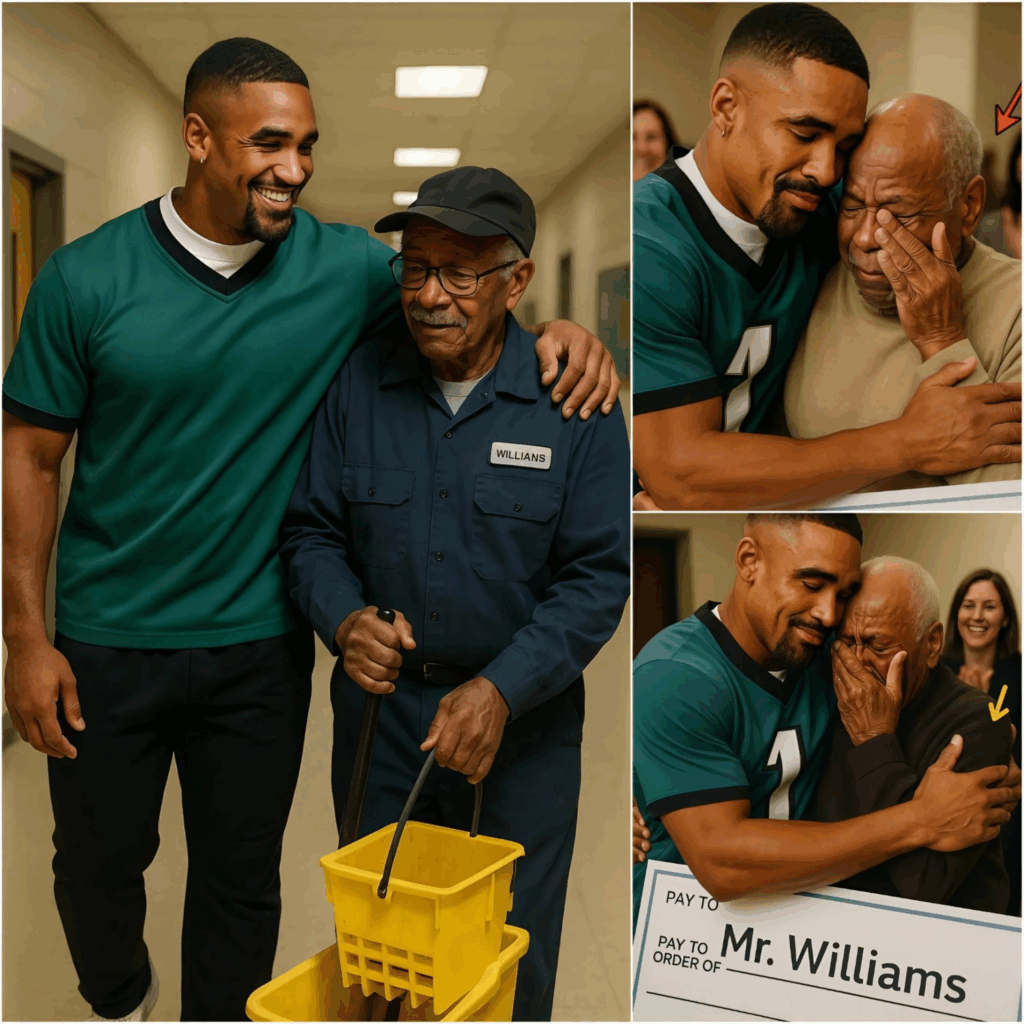 JALEN HURTS DISCOVERS HIS OLD SCHOOL JANITOR STILL WORKING AT 79 YEARS OLD — AND WHAT HE DID NEXT LEFT AMERICA IN TEARS
