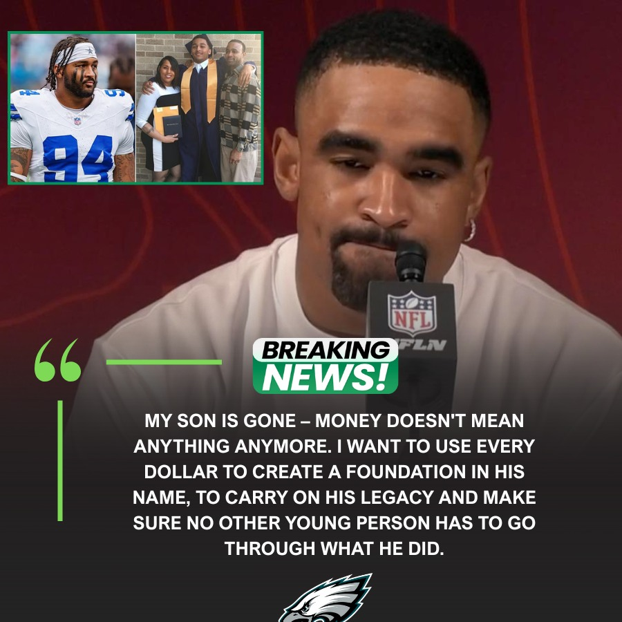 “My son would’ve loved this moment. He admired players who led with heart, and today Jalen is here — not as an Eagle, but as a man who understands loss, pain, and purpose.”