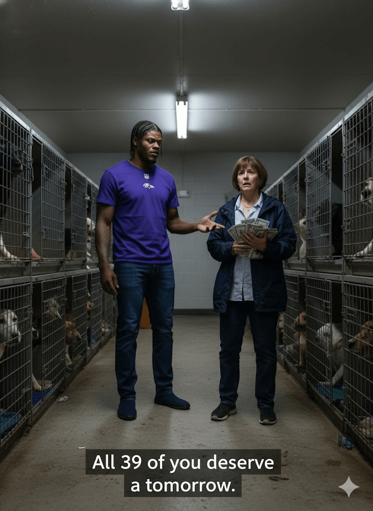The shelter owner, a woman worn thin by tireless effort and crushing debt, was preparing for the worst when a tall figure quietly entered. It was Lamar Jackson, the 28-year-old NFL sensation, whose presence alone sent a ripple of disbelief through the small, forlorn space. His usual game-day intensity was replaced by a gentle demeanor as he moved past the rows of kennels, his eyes searching until they found an old, frail Labrador mix named Buddy, tucked away and seemingly forgotten.