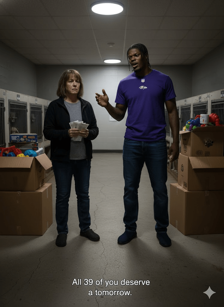 What no one knew was that a guardian angel, cloaked not in wings but in the humble attire of a Baltimore Ravens superstar, was about to step into this somber scene, ready to rewrite the fate of every dog inside. The stage was set for an extraordinary intervention, an act of compassion that would prove some heroes wear cleats, and their biggest plays happen off the field.