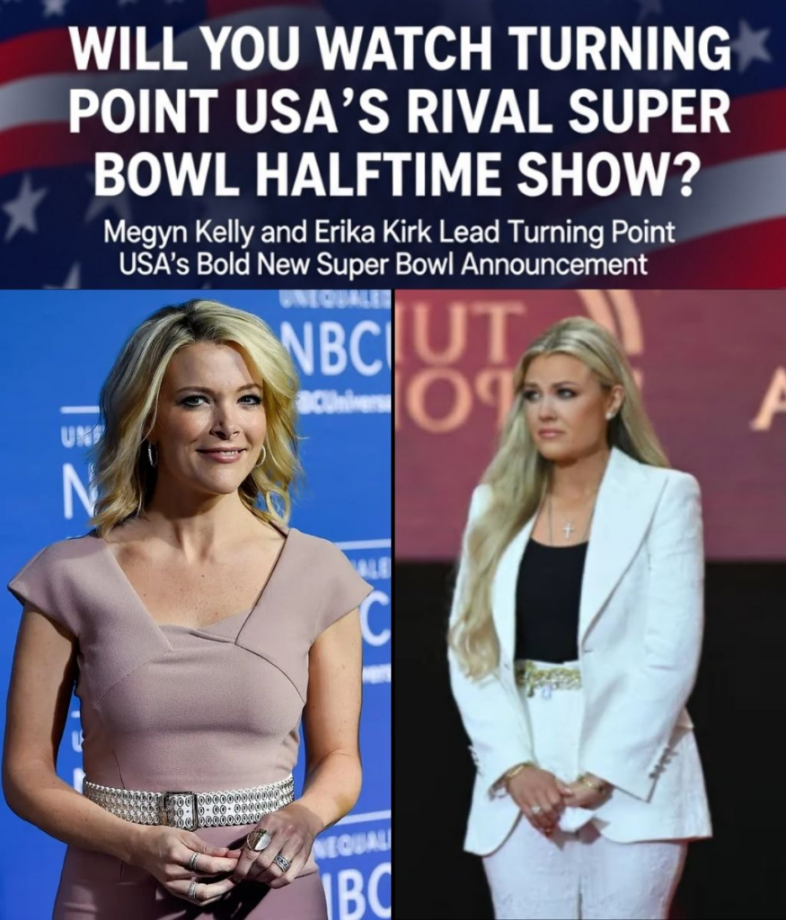 In a moment that may forever reshape the landscape of American entertainment, Megyn Kelly and Erika Kirk took the stage in Dallas, Texas tonight to unveil what many are already calling a cultural turning point — a faith-driven, family-centered alternative to the Super Bowl halftime show.