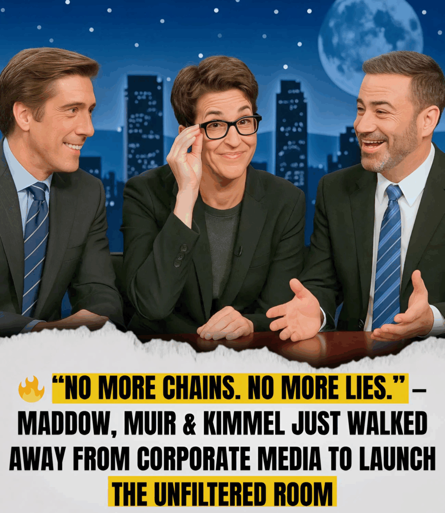 In a stunning act of defiance against corporate control, Rachel Maddow, David Muir, and Jimmy Kimmel have quit their major networks to launch The Real Room—a fearless, sponsor-free newsroom born from frustration with scripted media, igniting both chaos in the industry and hope among audiences craving real, unfiltered truth.