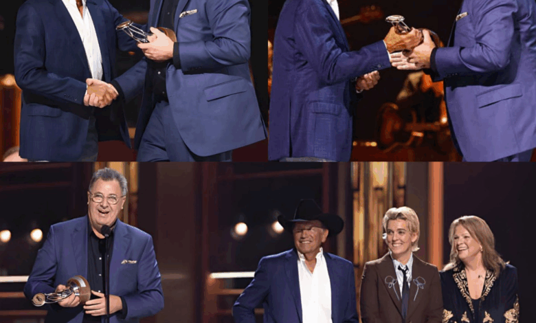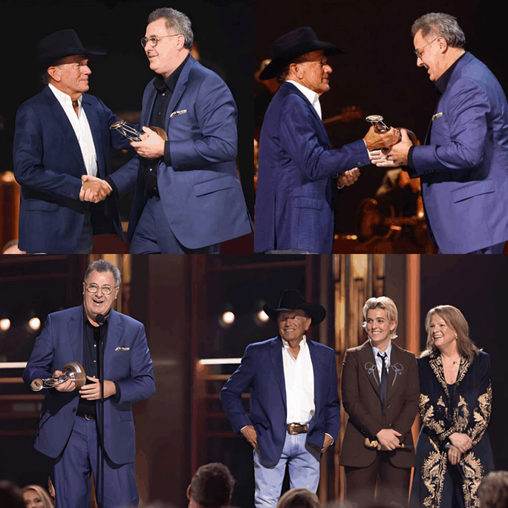 When George reached the final chorus, Vince stepped beside him and quietly joined. Their voices blended — soft, imperfect, beautiful — two giants standing side by side, carving a moment that will echo across CMA history for decades.
