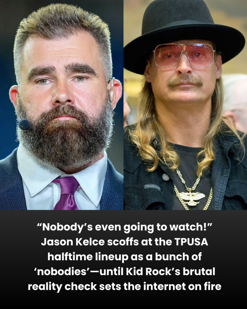 f.“Nobody’s even going to watch!” Jason Kelce scoffs at the TPUSA halftime lineup as a bunch of ‘nobodies’—until Kid Rock’s brutal reality check sets the internet on fire.f