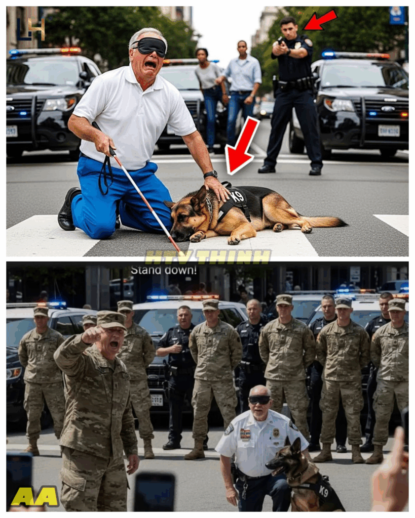 f.Police Attack Blind Veteran and His K9 Service Dog—Minutes Later, Military Convoy Sealed the Street!.f