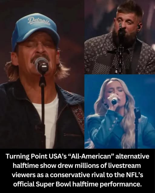 As the Super Bowl reached its most guarded minutes — the halftime window that networks protect like a crown jewel — viewers began clicking away from the main stage and into an alternative experience: Turning Point USA’s All-American Halftime Show.