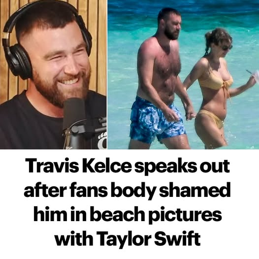 Travis Kelce has joked about his current physique after photos of the Chiefs star rocking a ‘Dad bod’ on holiday with Taylor Swift surfaced last week.