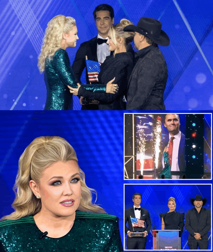 The atmosphere inside the Fox Nation Patriot Awards was electric — a blend of reverence and resilience. The crowd rose to its feet as Erika approached the stage, visibly moved, her composure steady yet tender. As Jason Aldean handed her the crystal award engraved with Charlie’s name, he paused, his voice filled with respect: