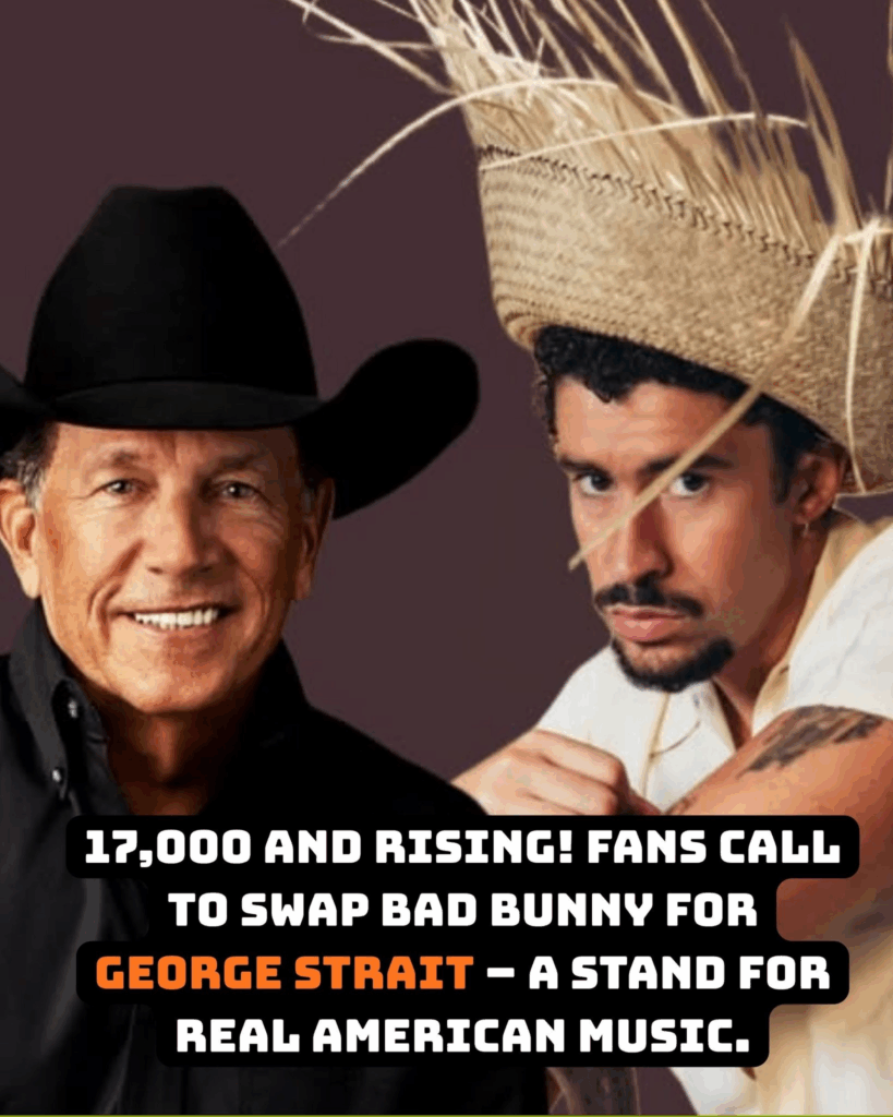 Just moments ago, a grassroots petition calling for country legend George Strait to replace Bad Bunny as the featured performer for Super Bowl LX’s halftime show officially surpassed 17,000 signatures — and the number continues to climb by the minute. What began as a small online campaign among traditional country fans has now erupted into a nationwide cultural movement.