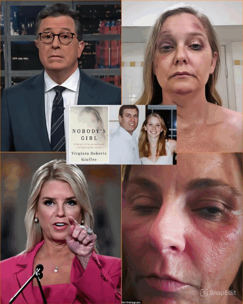 The tension was palpable. Cameras rolled as Colbert leaned into the microphone, his voice catching. “Be quiet, Pam Bondi — it’s shameful how hard you’re trying to protect the powerful,” he said, naming names that had previously been whispered only behind closed doors. The moment was electric. The control room panicked. Producers whispered in urgent tones, unsure if the segment should be cut. The broadcast continued, uninterrupted, as Colbert’s words pierced the airwaves.