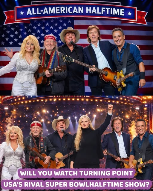 Whispers are spreading about the guest list for the “All-American Halftime Show,” and if the rumors are true, it’s nothing short of revolutionary. Names like Dolly Parton, Willie Nelson, Garth Brooks, Paul McCartney, and Bruce Springsteen are being floated as potential headliners. This line-up isn’t just a collection of stars—it’s a gathering of icons that span genres, generations, and cultural movements. These legendary figures have represented the heart and soul of America through country and rock music, and their involvement would signal a celebration of the traditions that have long been associated with the Super Bowl’s halftime show, but with a fresh, authentic twist.
