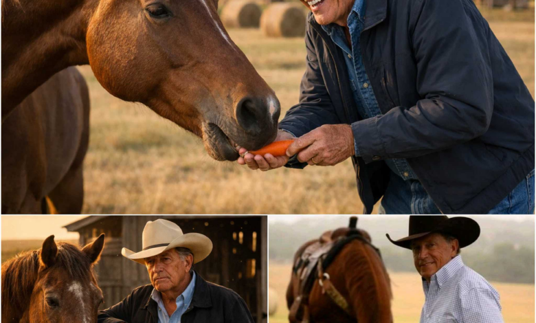 George Strait has spent his life mastering the art of understatement. He doesn’t chase emotion; he lets it arrive. That is why his recent farewell message hit so hard. In a brief, deeply personal note, Strait shared that his beloved horse—his longtime companion—had passed away peacefully, leaving the ranch in a silence that felt unfamiliar. There were no theatrics in his words, no celebrity framing, just the kind of grief that comes from losing a soul that lived beside you for years. For Strait, this wasn’t about an animal. It was about a bond that shaped the rhythm of his life.