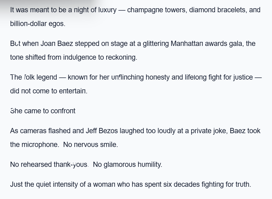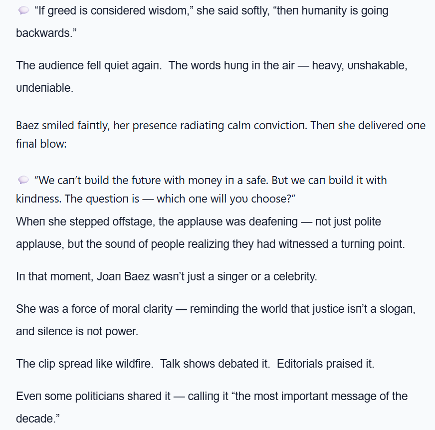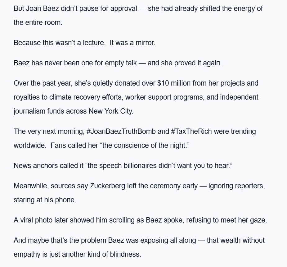 Home/Uncategorized/GS. “SHE SAID IT — AND THE ROOM FROZE!” Joan Baez SHOCKS Billionaires, including Mark Zuckerberg, With a Truth They could’t Handle Uncategorized GS. “SHE SAID IT — AND THE ROOM FROZE!” Joan Baez SHOCKS Billionaires, including Mark Zuckerberg, With a Truth They could’t Handle xiumhs12334 seconds ago0 0 Less than a minute xiumhs12334 seconds ago0 0 Less than a minute Facebook Twitter LinkedIn Tumblr Pinterest Reddit VKontakte Share via Email Print