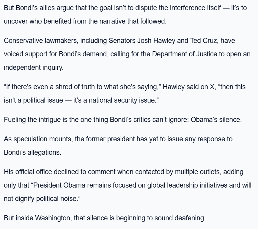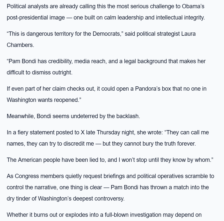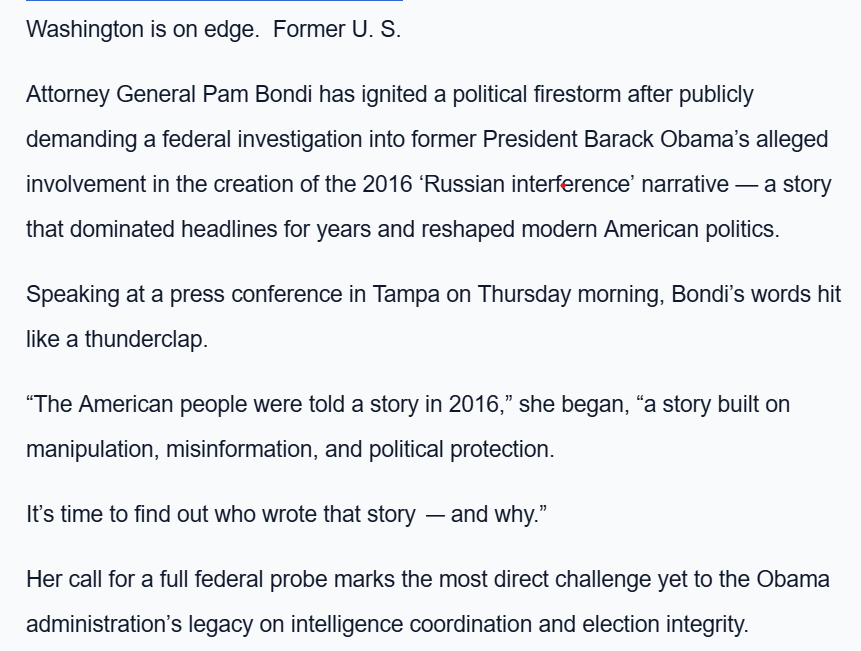 GS. Washington BLOWN WIDE OPEN. A political bombshell just dropped: Pam Bondi is accusing Barack Obama himself of secretly engineering the 2016 “Russian interference” narrative. jiji