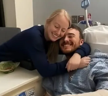 Katie stayed in her chair, fingers threaded through his. She spoke softly about ordinary things — the dog waiting at home, messages from friends, the sky outside the hospital window. Anchors to a world that continued moving even as theirs felt paused.