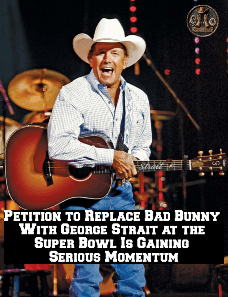 More than 40,000 fans have now signed a petition demanding that George Strait, the “King of Country,” headline the next Super Bowl Halftime Show, replacing the already rumored performer, Bad Bunny. What began as a debate over music taste has exploded into a nationwide conversation about tradition, values, and what the biggest stage in America should really represent.