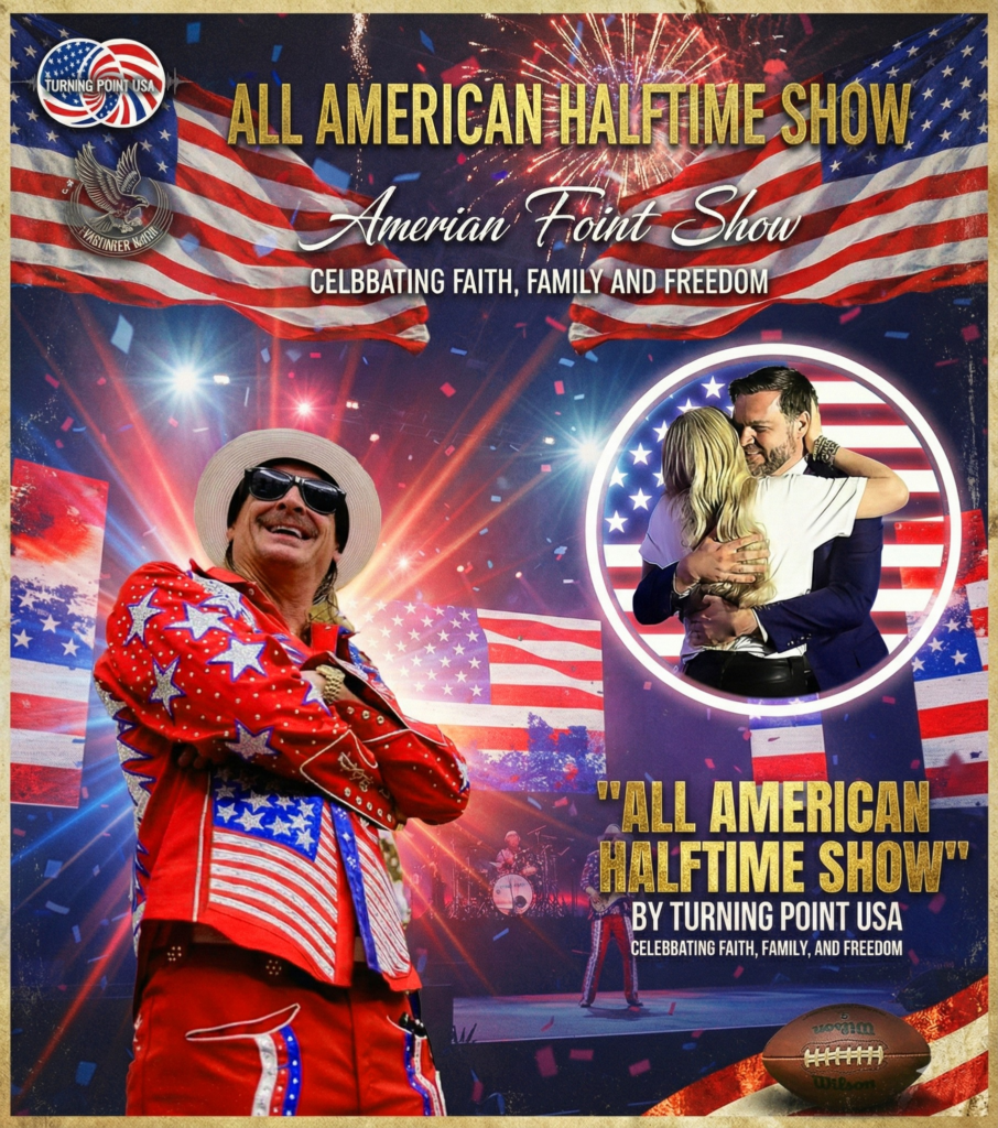 #AllAmericanHalftime #KidRock #TurningPointUSA #FaithFamilyFreedom #RedWhiteAndBlue #SuperBowlAlternative #CulturalStatement