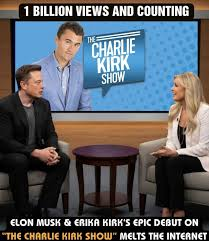 It didn’t build slowly. There was no gradual rollout, no careful warm-up, no weeks-long marketing push. One moment, timelines were business as usual. The next, a single phrase began appearing everywhere — “3 billion views?” — attached to the same source again and again: a new episode of The Charlie Kirk Show, featuring Elon Musk and Erika Kirk.