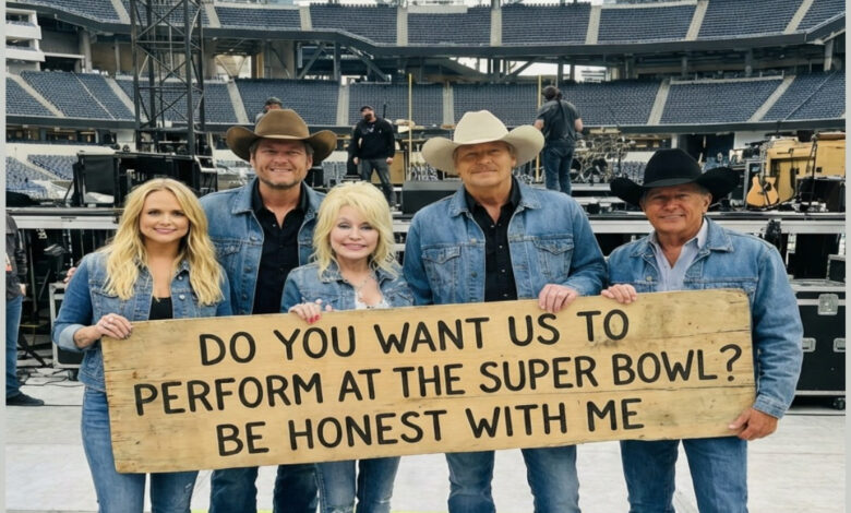 The whispers started small — just a few murmurs behind the velvet curtains of Nashville, in recording studios, and inside executive offices. But they’ve grown into a frenzy: Dolly Parton, Garth Brooks, Blake Shelton, George Strait, and Alan Jackson are all reportedly circling the same idea, a concept that insiders describe as unlike anything modern halftime audiences have ever experienced.