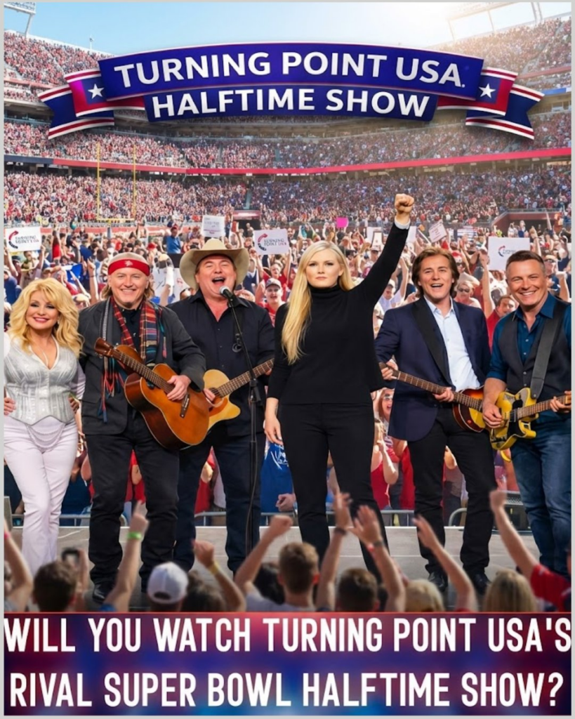 On one screen, viewers would see the NFL’s traditional spectacle — a glossy, trend-driven halftime show reportedly led by Bad Bunny, complete with the familiar formula: massive production, pop dominance, viral-ready moments.