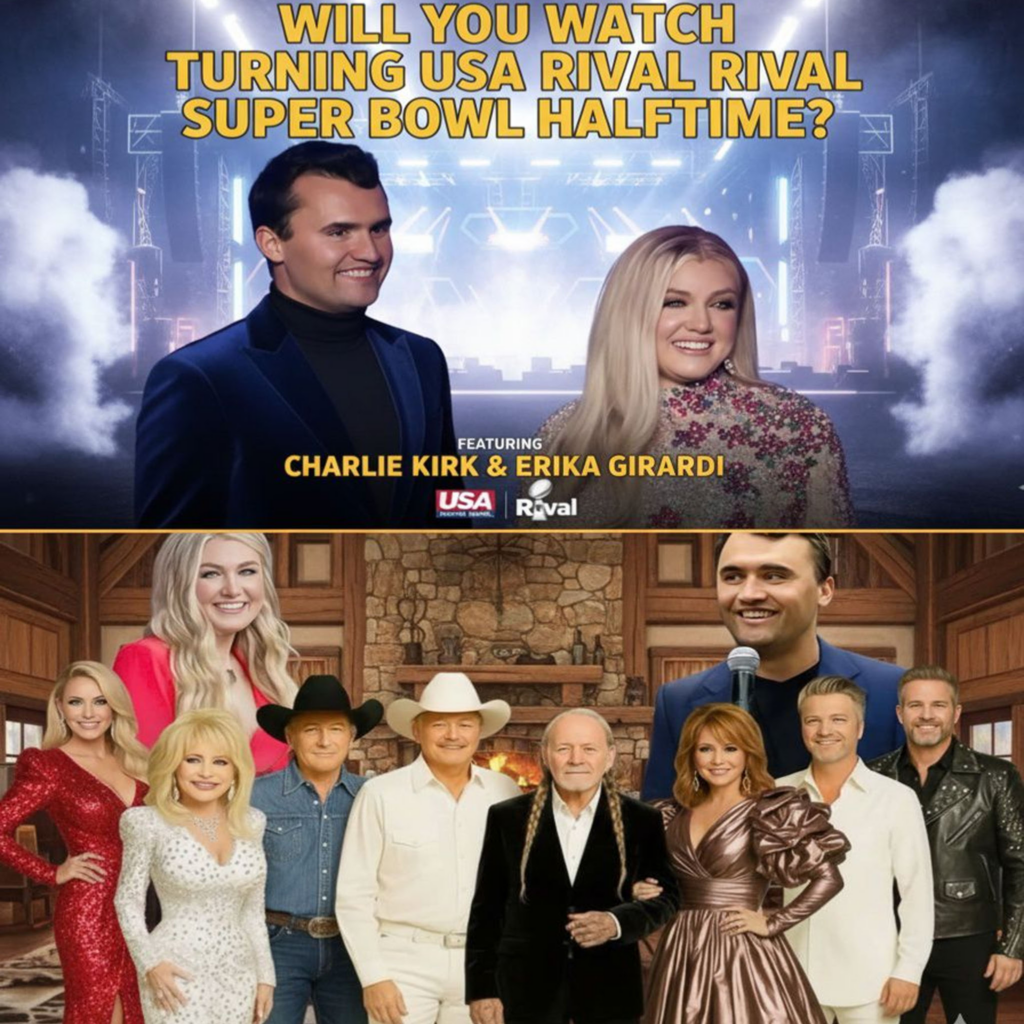 🚨 ERICA KIRK STIRS NATION: The All-American Halftime Show Emerges as a Bold Super Bowl Rival — Mystery Guest Sparks Frenzy 👀🔥
