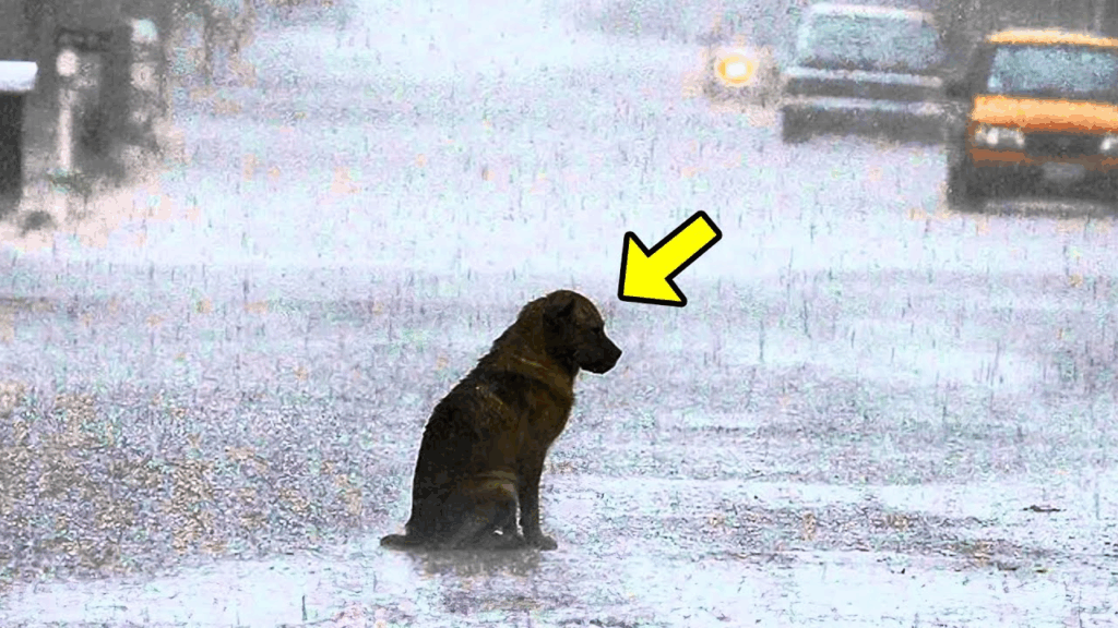 As thunder roared across the sky and rain flooded the streets, the world hurried home — doors closed, lights warm, hearts safe. But by the roadside, one small figure remained — a drenched stray dog, trembling beneath the downpour.
