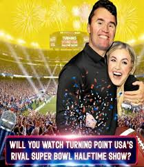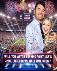 Turning Point USA, under the leadership of its polarizing and influential figures, has officially confirmed the launch of “The All-American Halftime Show”, a broadcast designed to air at the exact same time as the halftime window of Super Bowl LX on February 8, 2026. The announcement appeared on TPUSA’s platforms and during The Charlie Kirk Show, and the response has been explosive — some cheering, some shocked, all paying attention.