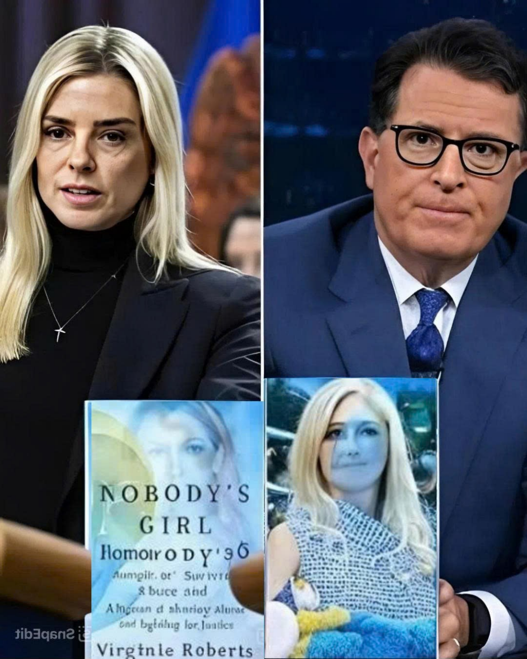 “I would encourage Pam Bondi to read Nobody’s Girl,” Colbert said, his tone calm but firm. “Maybe she’d understand why keeping those files sealed is not just bureaucratic — it’s moral cowardice.”