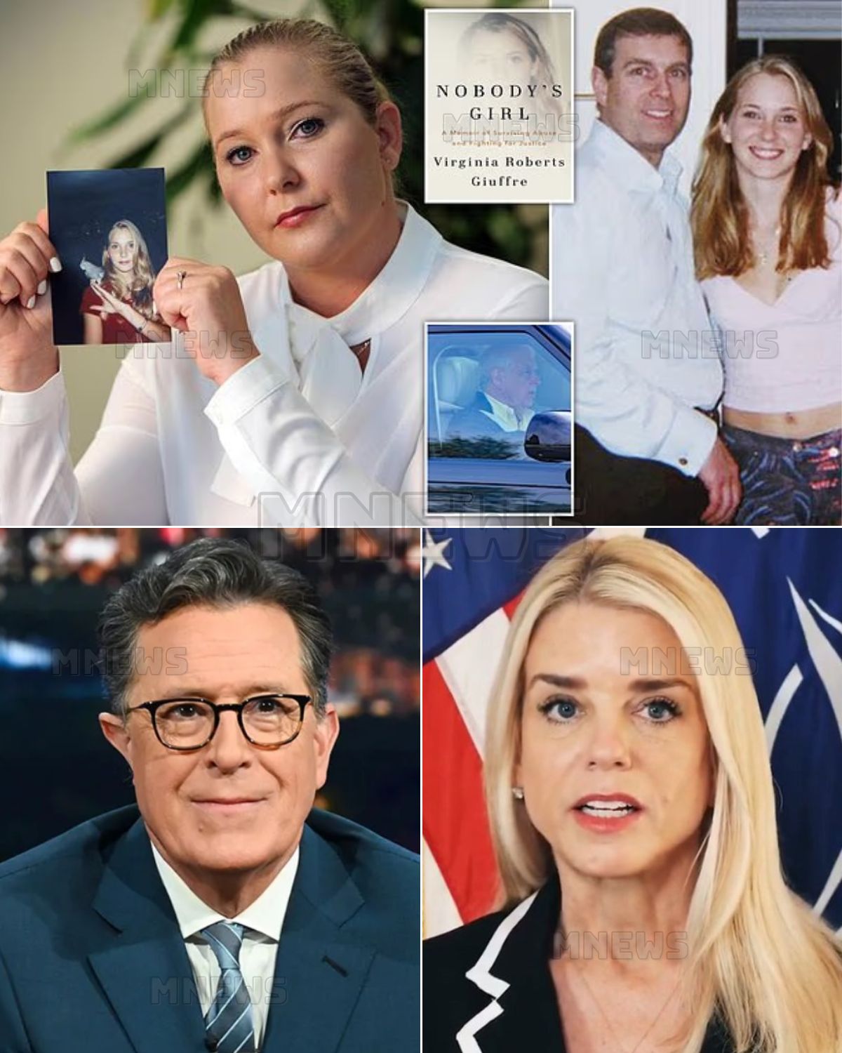 The catalyst? Giuffre’s newly released posthumous memoir — “Nobody’s Girl.” Colbert revealed that he had spent the weekend reading the haunting pages, describing them as “a punch to the soul” and “a document of truth written in blood and courage.”