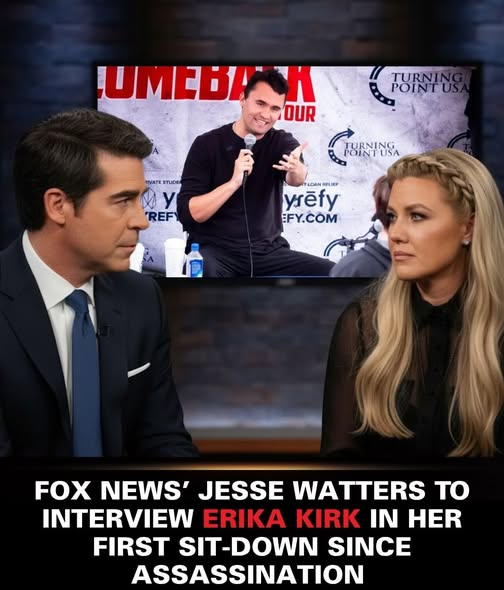 In what promises to be one of the most anticipated interviews of the year, FOX News host Jesse Watters will sit down with Erika Kirk for her first public conversation since the tragic assassination of her husband, Charlie Kirk — the conservative leader whose death stunned a nation and ignited a firestorm of questions, grief, and unresolved emotion.