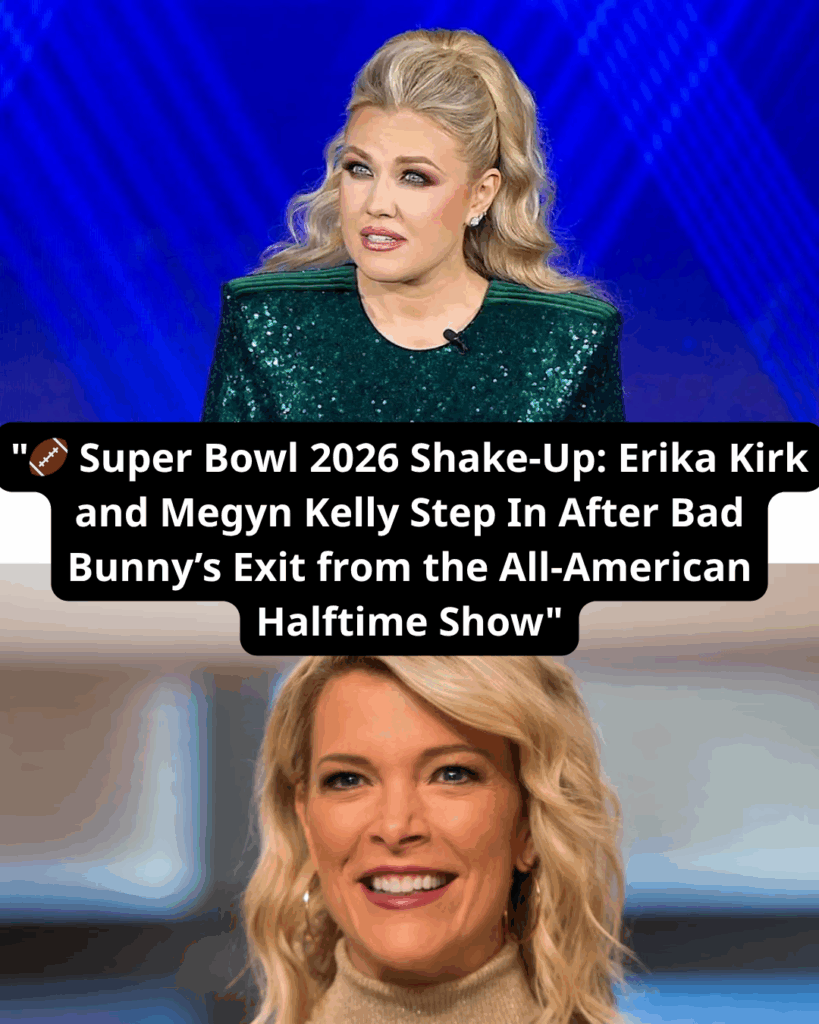 LDT “🏈 Super Bowl 2026 Shake-Up: Erika Kirk and Megyn Kelly Step In After Bad Bunny’s Exit from the All-American Halftime Show”