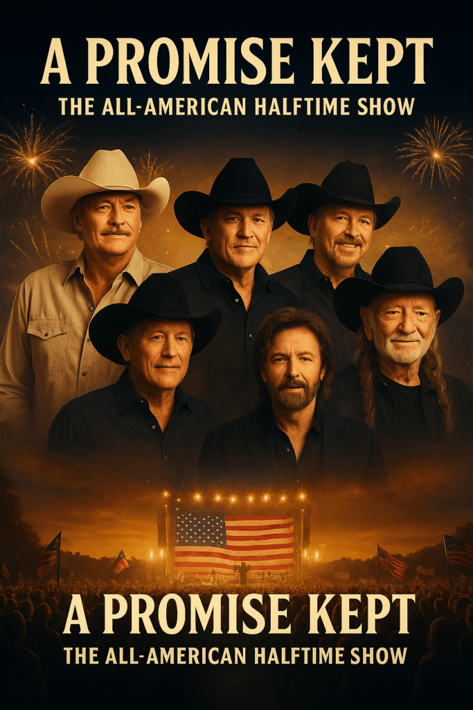 Six country icons — Alan Jackson, George Strait, Trace Adkins, Kix Brooks, Ronnie Dunn, and Willie Nelson — took the stage to launch “The All-American Halftime Show”, a powerful fusion of music, memory, and meaning.