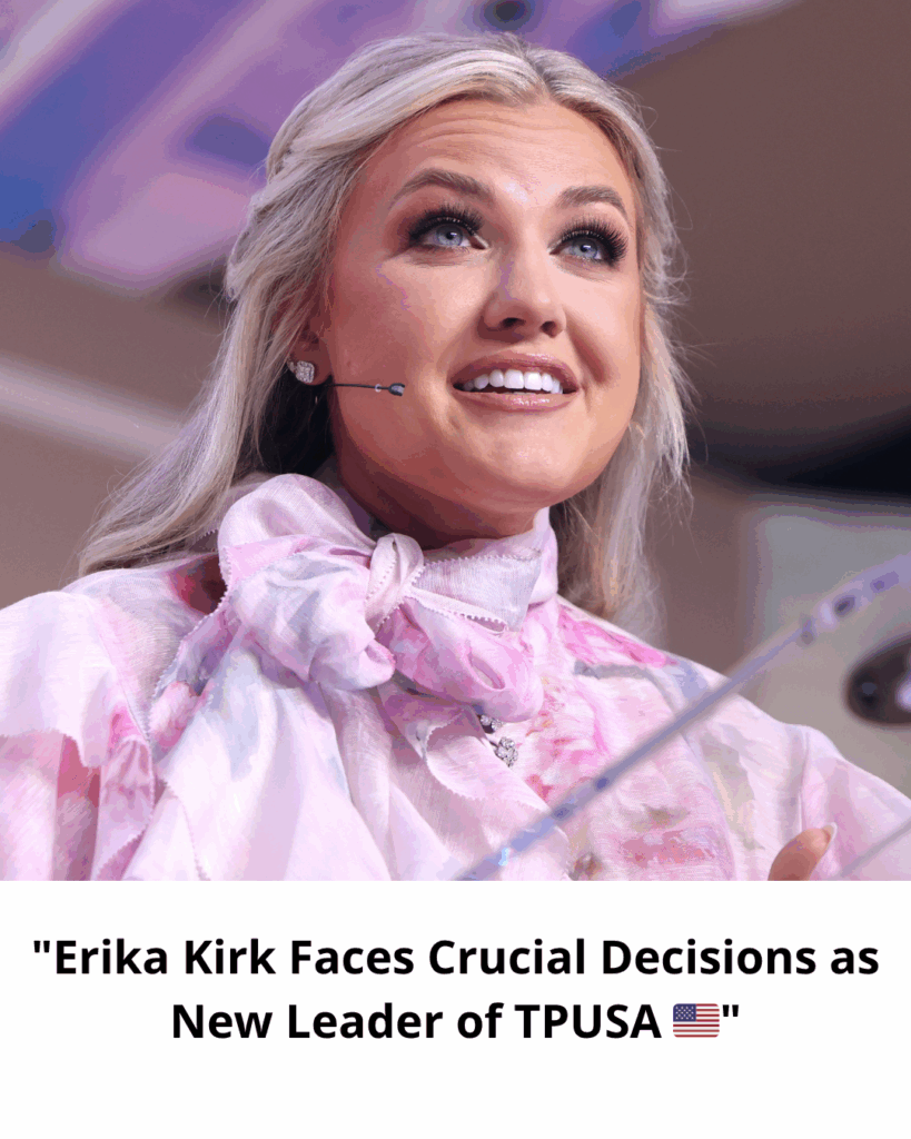 Following the tragic assassination of her husband, Charlie Kirk, Erika Kirk has stepped into the role of CEO and Chair of Turning Point USA (TPUSA), immediately confronting a series of pivotal decisions that could shape the organization’s future.